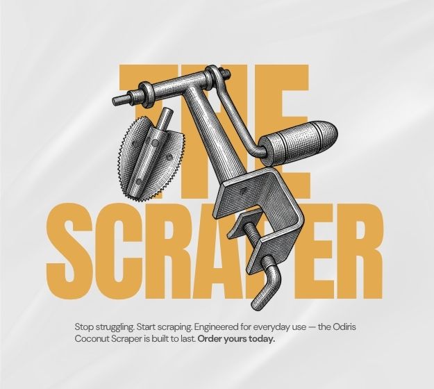 Since 1952, Odiris Engineering has equipped Sri Lankan kitchens with tools built to last a lifetime. Our handcrafted coconut scraper range — from the iconic A8 grater to the compact B5 — is therefore trusted by families across the island. Additionally, pair them with our professional kitchen knives and you have everything you need, made right here in Sri Lanka. We also offer a full range of coconut graters, electric graters, spare blades, and kitchen accessories.